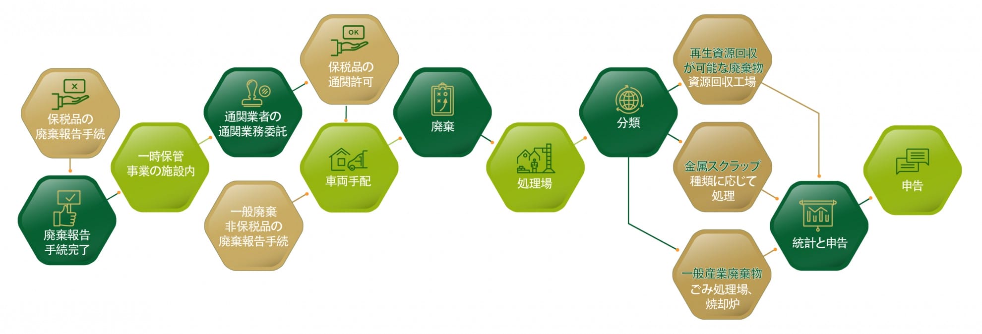 報告済み廃棄物を通関手順を行うまで適切に保管します。